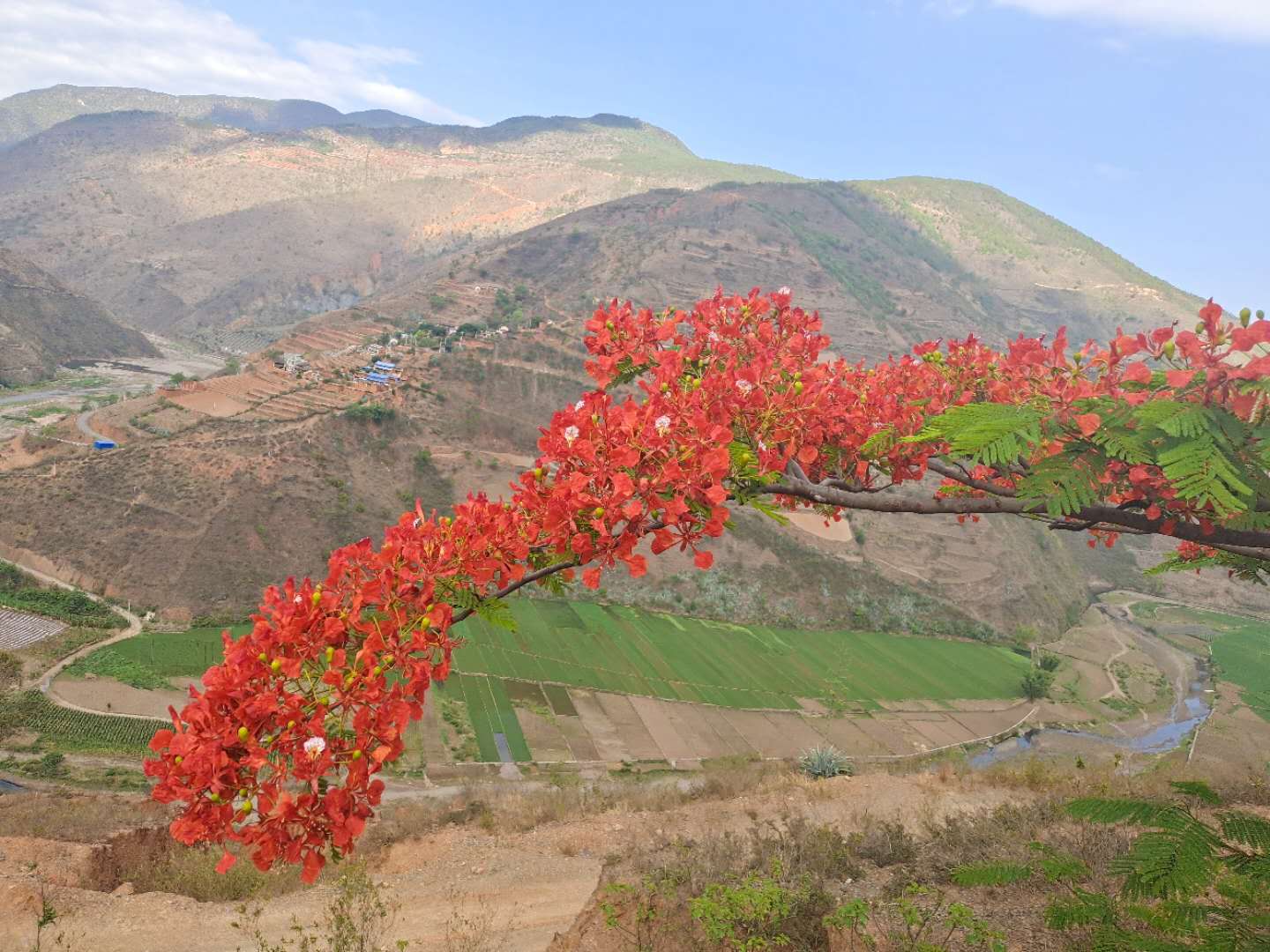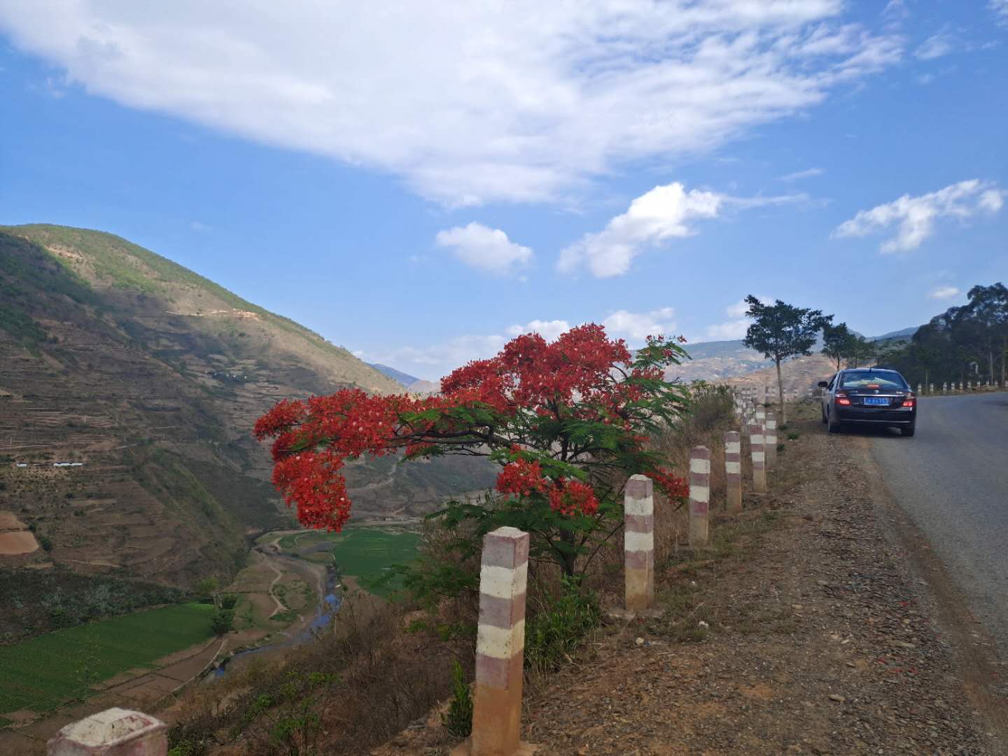 近年来,红土坡镇党委、政府紧紧围绕“吃热气、长志气、出名气”的工作思路,在南景线阿底沟至礼舍江桥路段、罗纳里村组公路沿线、明么小龙潭公路沿线种植凤凰树1930棵、小叶榕900棵、蓝花楹150棵,使公路沿线林木成行、空气清新环境优美,把沿江公路建成绿化线、风景线、致富线。现在正值凤凰花开,那一树树火红的凤凰花,与江畔千亩良田里绿油油的庄稼相映成趣,预示着今年又是一个丰收年。
