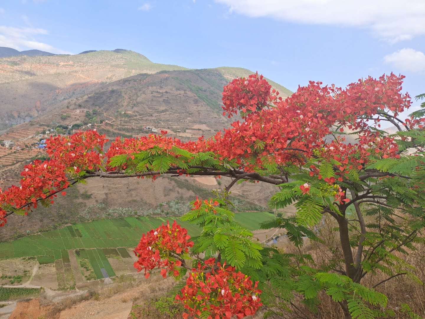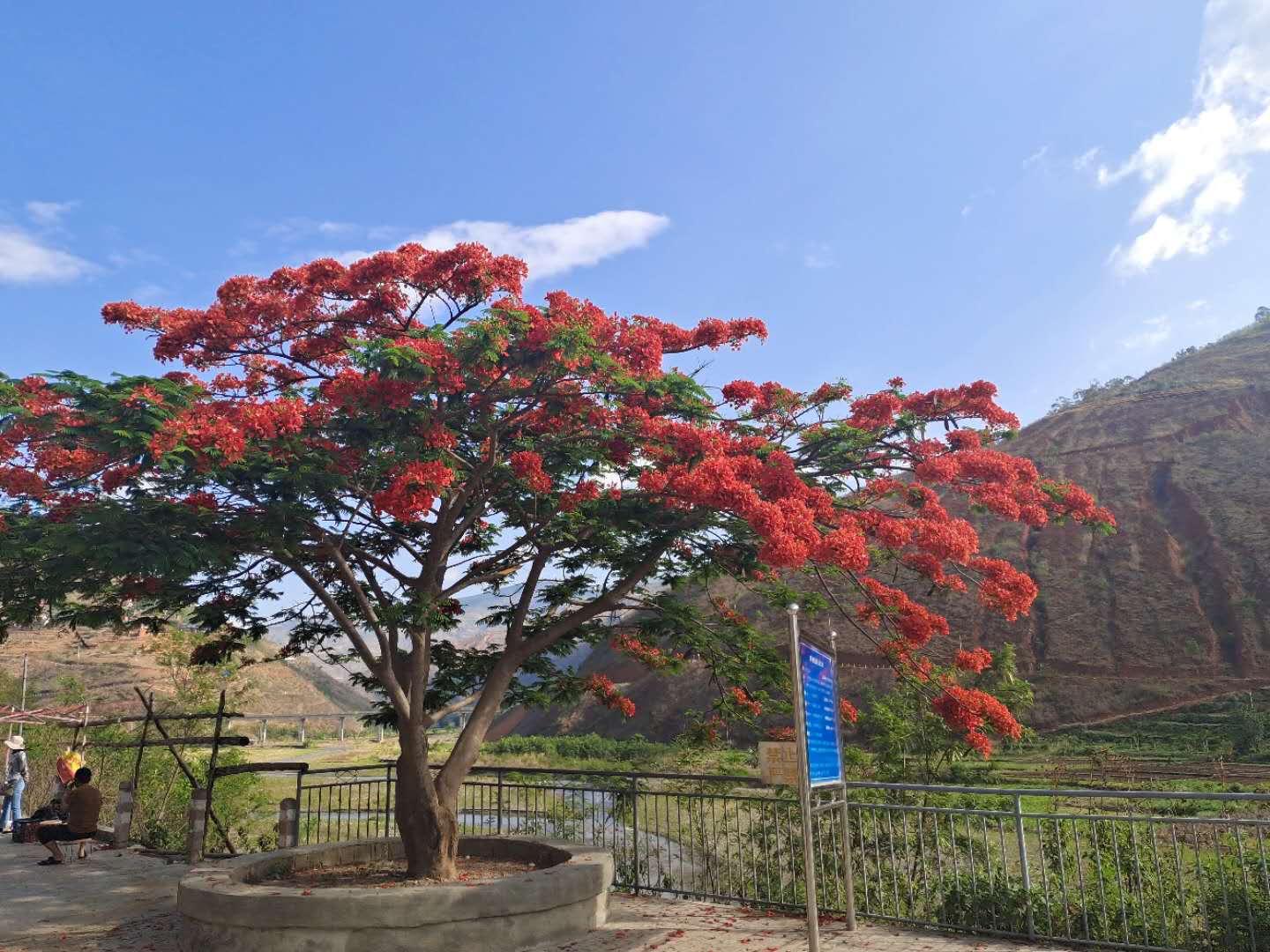 凤凰花,绝对是夏天的尤物,更是大自然对热区的专宠,在五月天如期绽放。不论你是久居红土大地之人,还是旅途邂逅之客,这满树红花与绿叶相映成趣的美景定会让你百看不厌,情不自禁驻足停留、饱览一树的妖娆。凤凰花生命力极其旺盛,耐干旱耐高温,正因如此,才足以在礼舍江畔沿江公路繁衍生息,继而打造“最美沿江公路”。