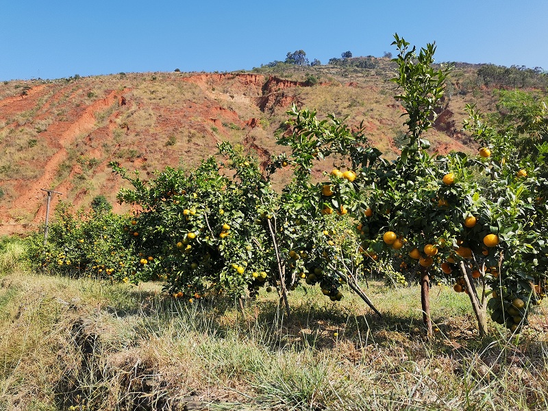 红土坡镇礼舍江畔属低热河谷气候,年平均温度在25℃以上,充足的光照条件、滔滔不绝的礼舍江水、质朴勤劳的劳动人民和独特的交通区位优势造就了发展热带果蔬的天时地利人和。由于常年只用使用农家肥、有机肥,且水量充足,红土坡镇沿江两岸的橙子汁多味甜。走进橙子地,一个个饱满的甜橙挂满枝头,微风拂过,橙儿轻轻舞动,金灿灿的脸庞含着羞、带着笑,仿佛载歌载舞地迎接游客的到来!