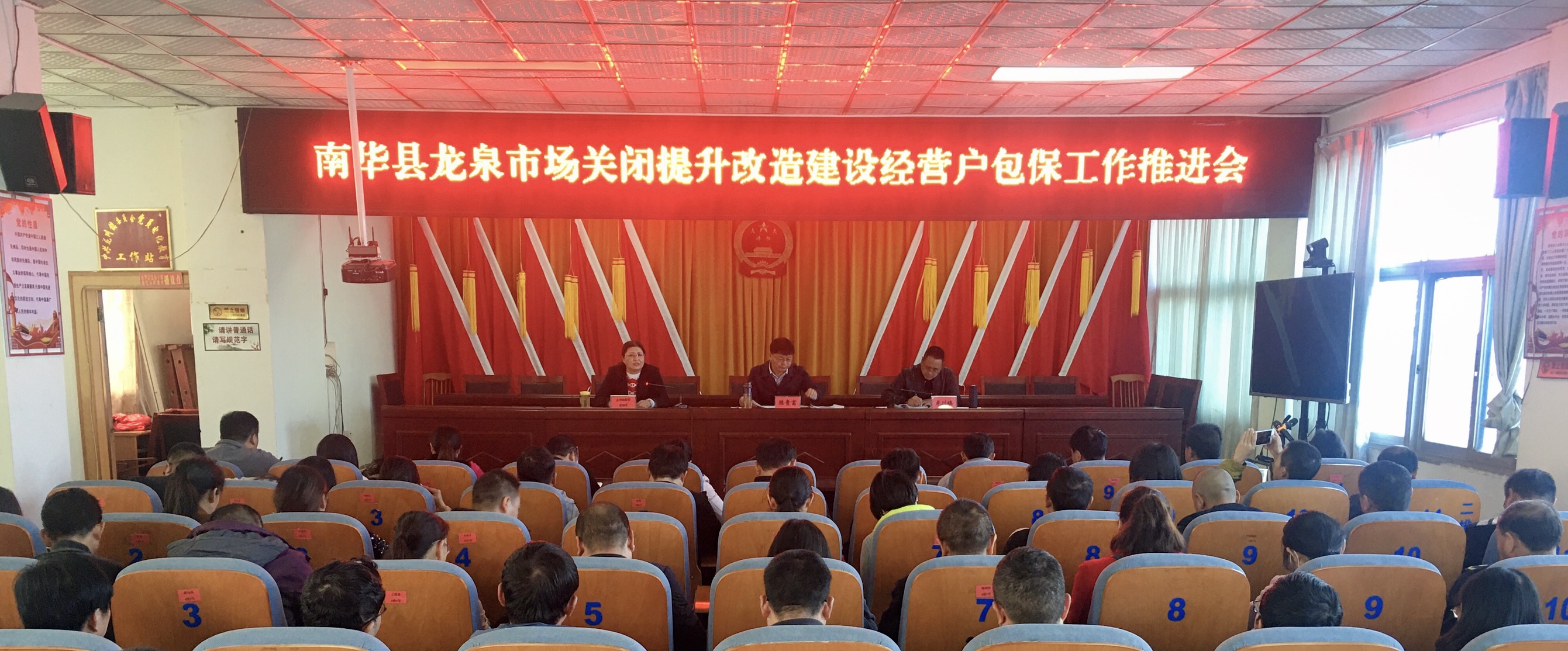 11月24日下午,南华县龙泉市场关闭提升改造建设市场经营户包保工作推进会在龙川镇召开。县人民政府副县长陈贵富出席会议,县级各包保单位及龙川镇负责人共计60余人参加会议。