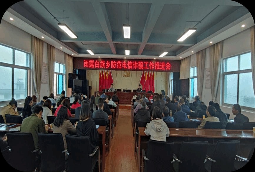 一是加强组织领导,筑牢防骗“防火墙”。组织雨露乡各站所负责人、各村委会书记、主任召开雨露乡防范电信诈骗工作安排部署会,会议要求各站所、各村委会要提高认识,强化责任,狠抓落实,确保全乡防范电信诈骗工作有序推进。