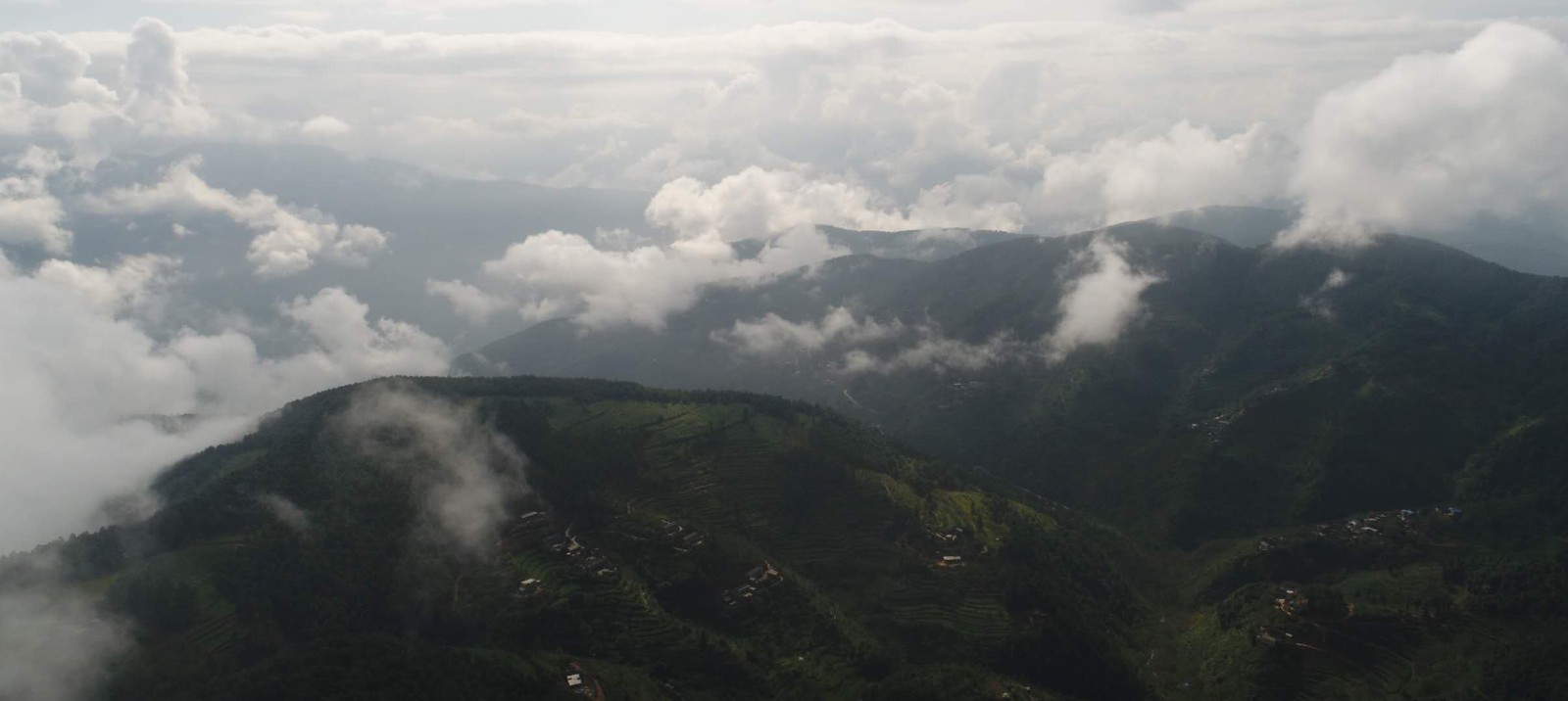 人们或居住在集镇上,或隐没山谷里。