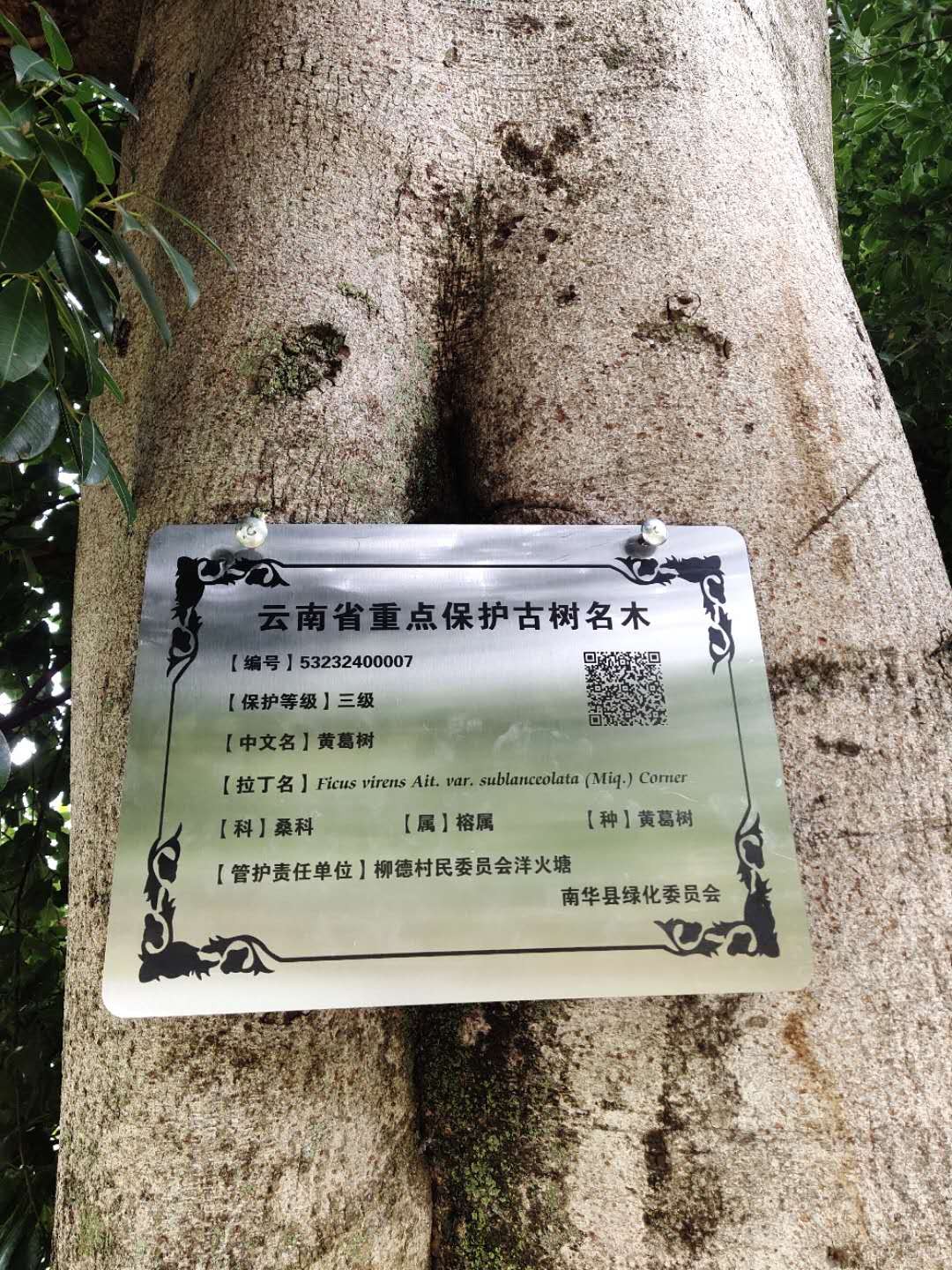 33株古树名木挂牌,严格按照调查的GPS坐标点逐株进行核对,做到一树一档、一树一牌。保护牌上标注了树种、学名、科属、等级、树龄、树木编号、管护单位等信息。群众还可以通过保护牌上的二维码登录查看信息,每株古树名木都有历史、文化、科研价值和纪念意义的相应记载说明。至此,全乡33株古树名木都有了自己的“身份证”。