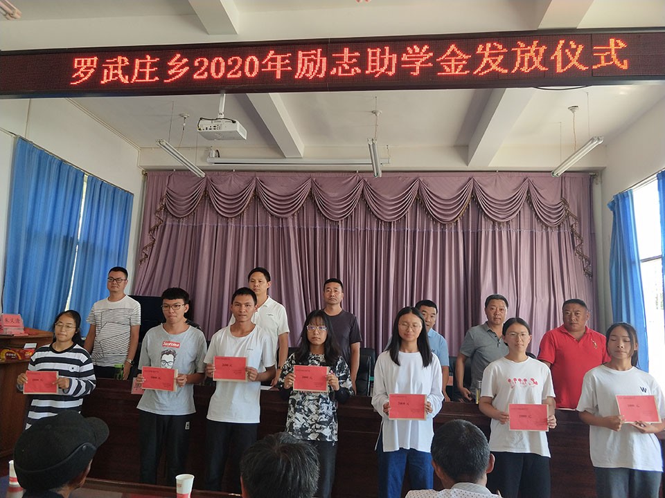 开展金秋励志助学活动,是罗武庄乡延续了8年的好传统,励志助学金主要来源于各界爱心企业、爱心人士以及罗武庄乡职工捐款,自2012年成立以来,共为194名学生发放助学金共计238000元。通过励志助学活动,动员社会各方力量对罗武庄乡的教育事业发展给予更多地关心和支持,使更多的人参与到爱心助学活动中来。让受资助的同学们感受到社会的关爱,激励他(她)们发奋进取,树立远大理想,常怀感恩之心,常存进取之志,励志勤学,早日成为报效国家,建设家乡的栋梁之才,以优异成绩回报社会的关心厚爱,回报父母的养育之恩。