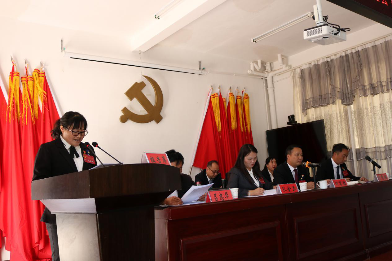 李世花同志代表中共红土坡镇纪律检查委员会作了题为《立足新时代 展现新风貌 再创新作为 坚定不移推动全面从严治党向纵深发展的》纪委工作报告。