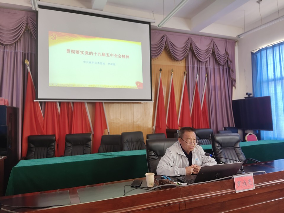 培训班邀请县委党校高级讲师罗成亮同志作专题辅导。罗成亮同志在辅导中指出:认真学习领会党的十九届五中全会精神,要结合实际,准确把握罗武庄乡在立足新发展阶段、贯彻新发展理念、构建新发展格局中的新使命和新任务;各位干部要在落实罗武庄乡“十四五”规划愿景、巩固拓展脱贫攻坚成果、实施乡村振兴战略中坚决贯彻落实好党的十九届五中全会精神,为罗武庄乡在奋斗“十四五”、奋进新征程中做出自己应有的贡献。