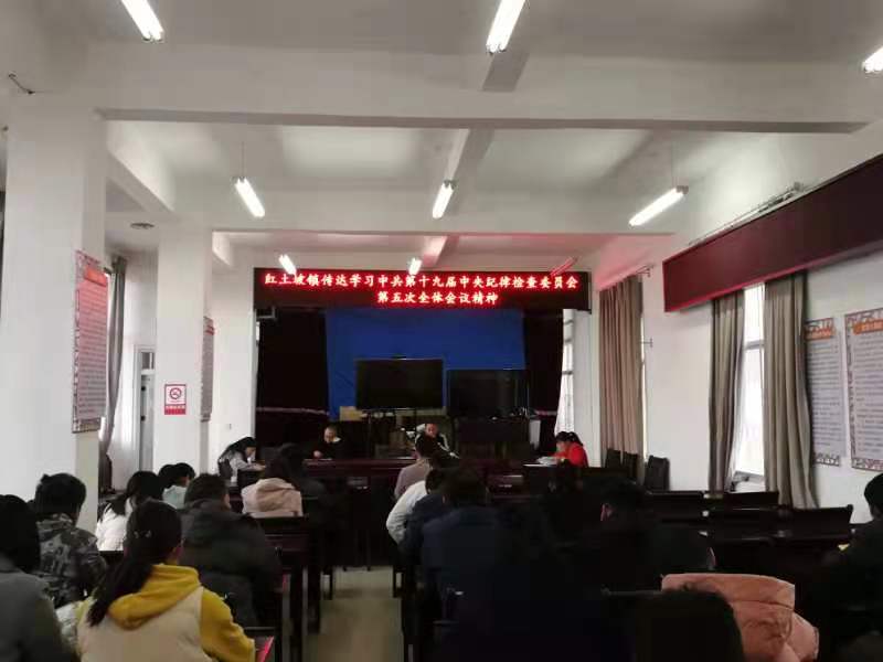 1月25日上午,红土坡镇召开全体干部职工会,专题传达学习中国共产党第十九届中央纪律检查委员会第五次全体会议精神。全镇68名党员干部参加学习。