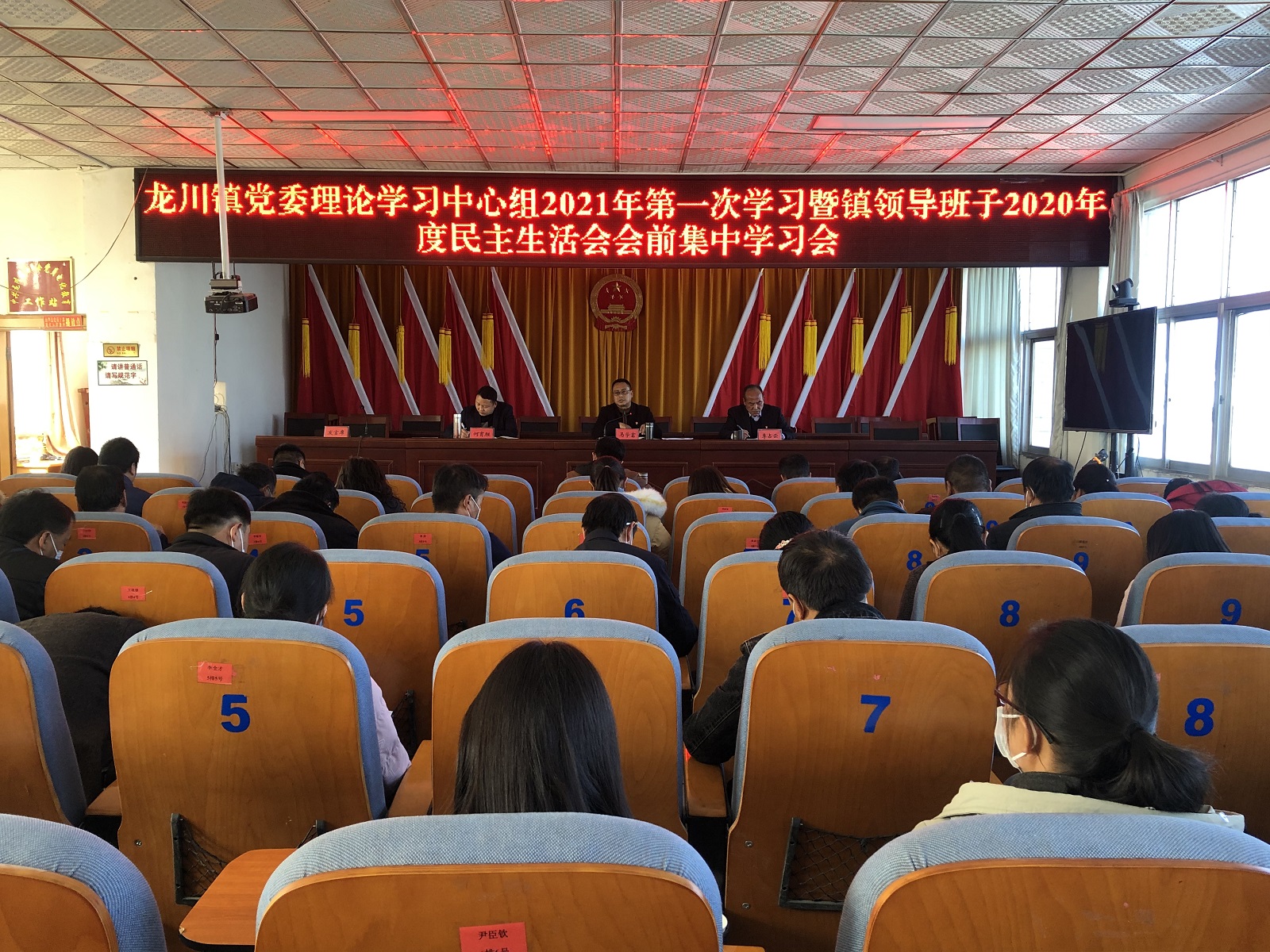 1月22日下午,龙川镇召开镇党委理论学习中心组2021年第一次学习暨镇领导班子2020年度民主生活会会前集中学习会议,镇全体班子成员,五办七中心主任、副主任,29个村(社区)书记共计69人参加会议。