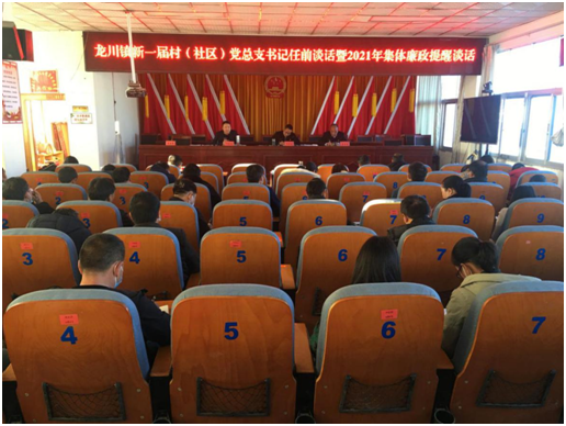 为让新一届村(社区)党总支书记尽快理清工作思路,进入工作状态,提高新一届村(社区)党总支书记的政治理论素质和驾驭农村实际工作能力,保持村(社区)党总支各项工作平稳有序开展,1月22日下午,龙川镇召开新一届村(社区)党总支书记集体谈话暨2021年集体廉政提醒谈话会议。会议由镇党委书记马学富同志主持。镇全体班子成员、各村(社区)党总支书记、镇属党支部书记参加了会议。