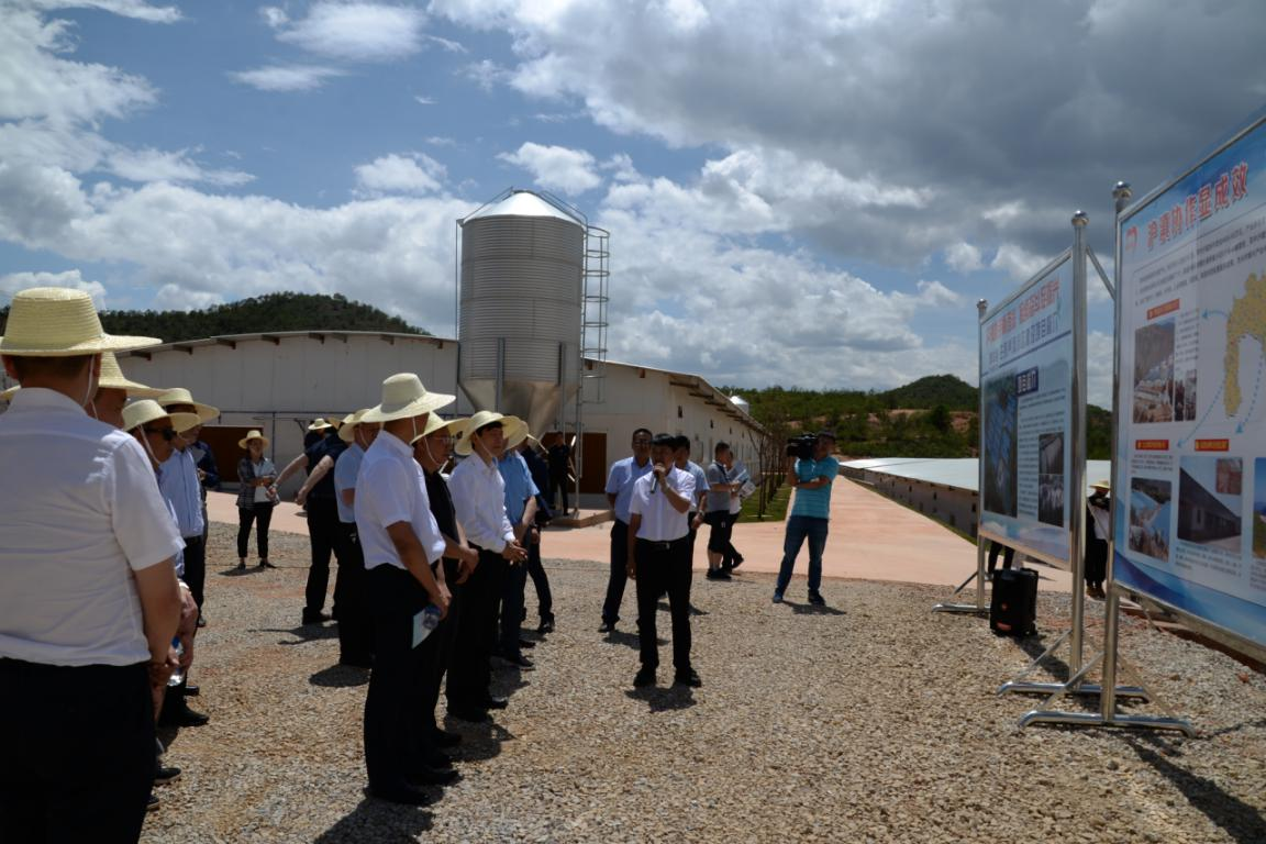 考察团一行首先到达石门生猪养殖基地。县人民政府副县长、县扶贫办主任李春剑向考察团介绍,在上海市嘉定区援助帮扶资金的支持下,龙川镇在石门村委会富裕厂小组分期建设规模为1.3万头的标准化生猪养殖小区,以带动全镇养殖业的转型升级和进一步拓展脱贫攻坚成果,让受益脱贫户实现稳定增收。