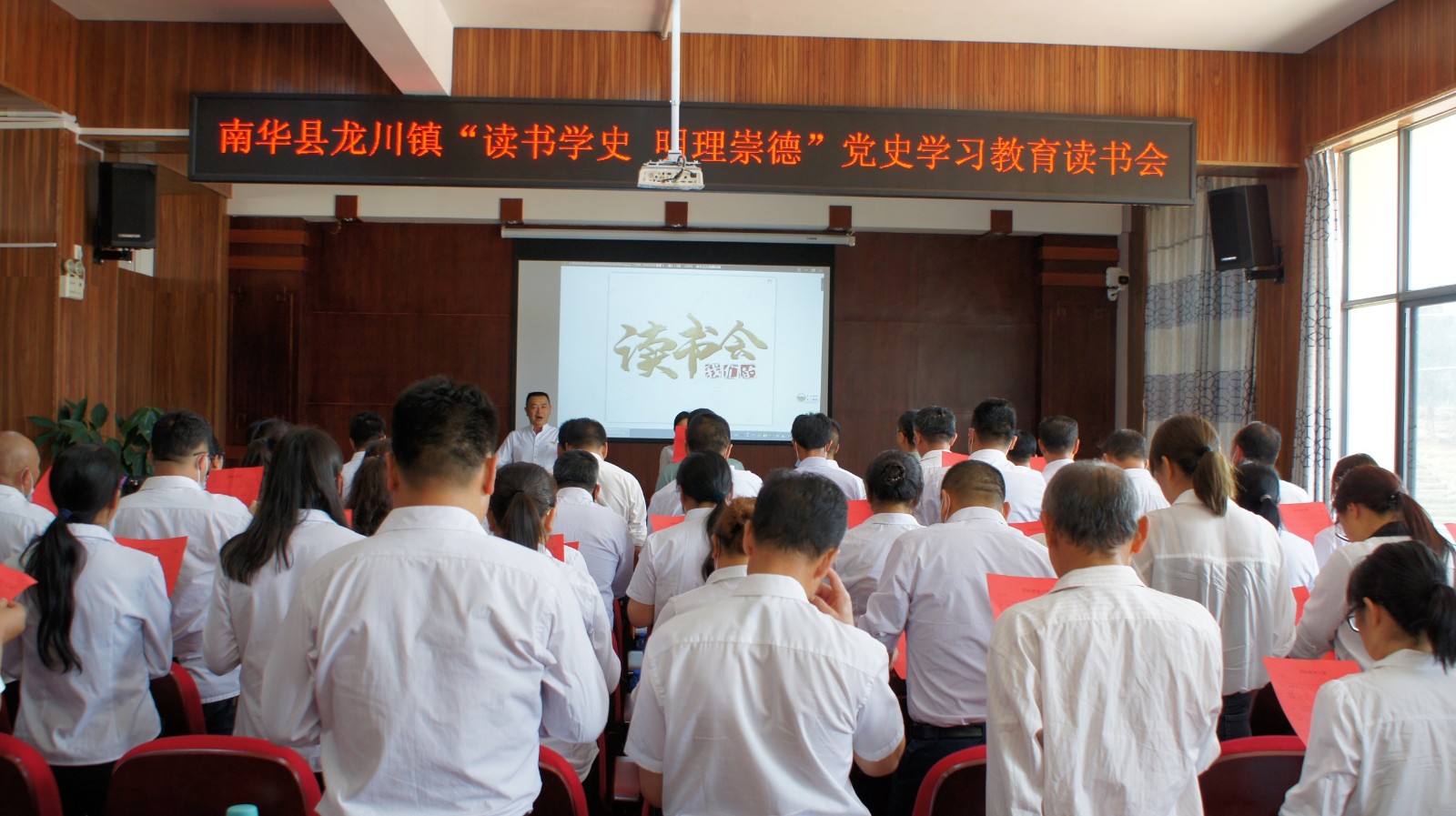 为深入推进党史学习教育,结合全民阅读计划工作的开展,龙川镇于5月26日下午组织全体党政领导、镇属机关党支部党员80余人在县图书馆举办“读书学史 明理崇德”党史学习教育读书会。