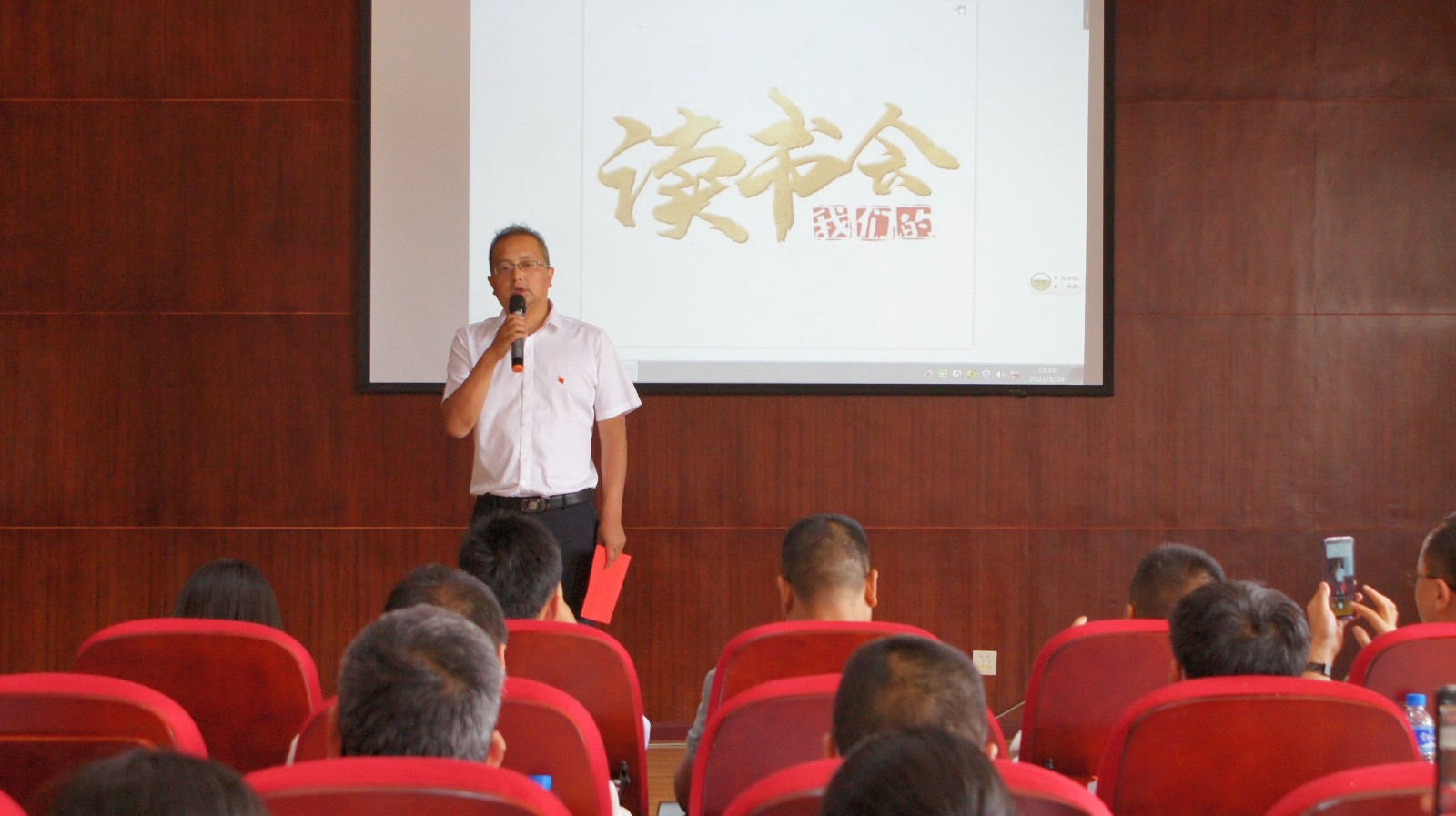 读书会在机关一支部夏正、廖成芳两位同志分享的《红船——从南湖启航》中大会拉开序幕,各支部先后通过朗读、朗诵、演讲的形式分享了《有一首歌》《战斗日记》《回眸党史 感恩祖国》《传承红色基因 争做时代新人》《沁园春·雪》等节目,现场不时响起阵阵热烈的掌声。