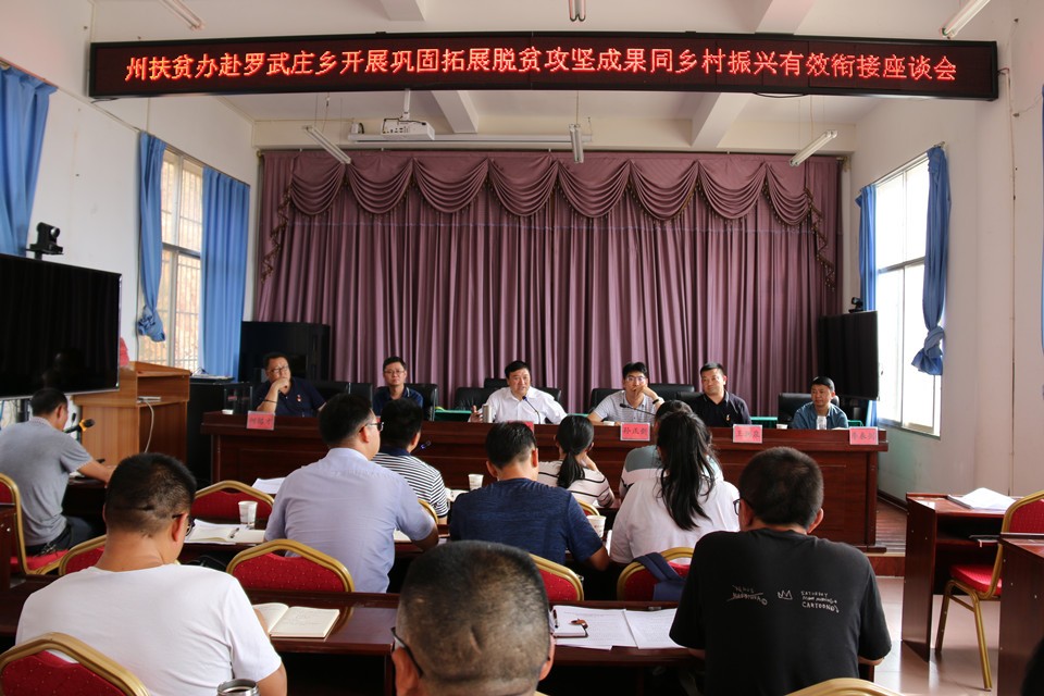 5月24日下午,州政府副秘书长、州扶贫办党组书记、主任罗文慧同志带领州扶贫办全体干部职工赴罗武庄乡开展巩固拓展脱贫攻坚成果同乡村振兴有效衔接座谈会,州扶贫办副主任孙正新主持会议,县扶贫办主任李春剑参与座谈。