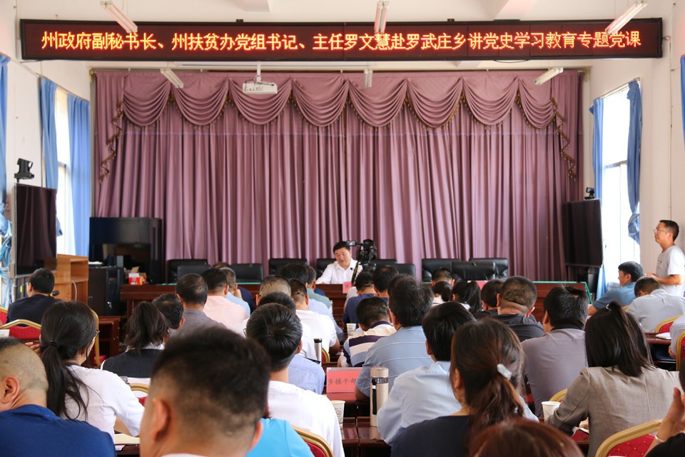 5月24日,州人民政府副秘书长、州扶贫办党组书记、主任罗文慧到南华县罗武庄乡讲党史学习教育专题党课,乡政府全体干部职工、各村党支部书记、驻村工作队共100余人参加会议,会议由乡党委书记彭建林同志主持。