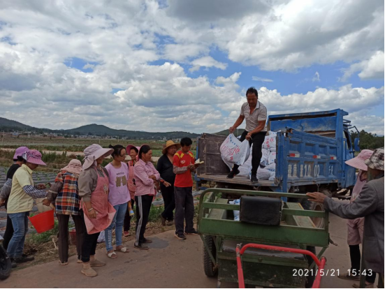 蓝天白云下,村民们戴着遮阳帽,俯着身子,在不同的连片轮作片区忙得不亦乐乎,有的在水田忙着引水、平田、插秧,有的在玉米地忙着除草、打塘、播种,有的在烟田忙着给烟苗浇水、施肥,有的在田边排着队领取补贴发放的肥料......整个田坝洋溢着生机与活力。