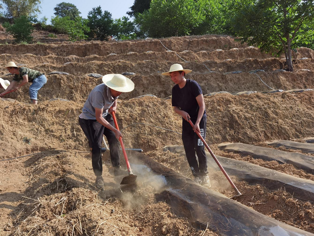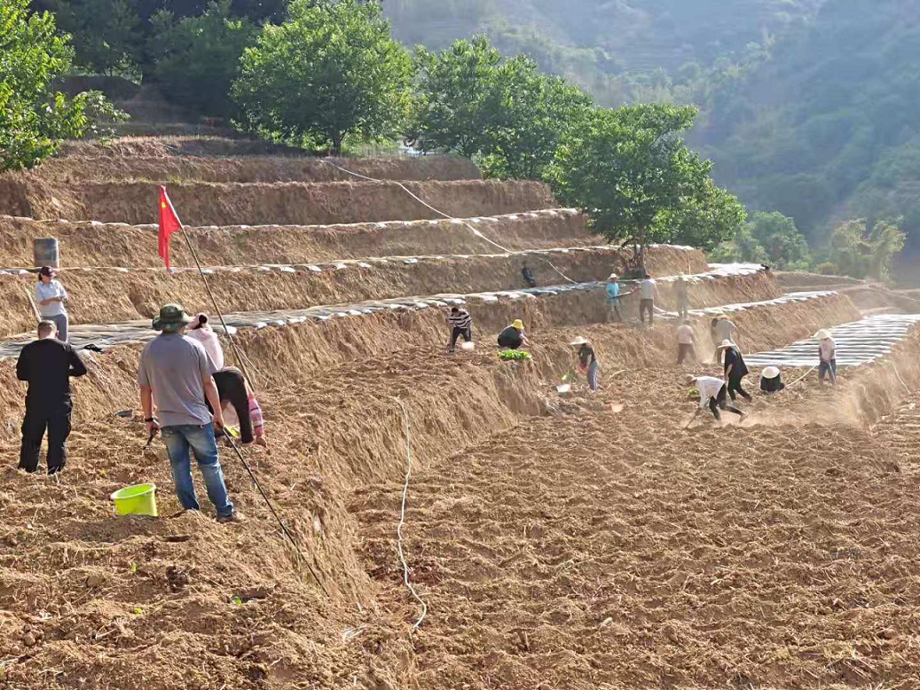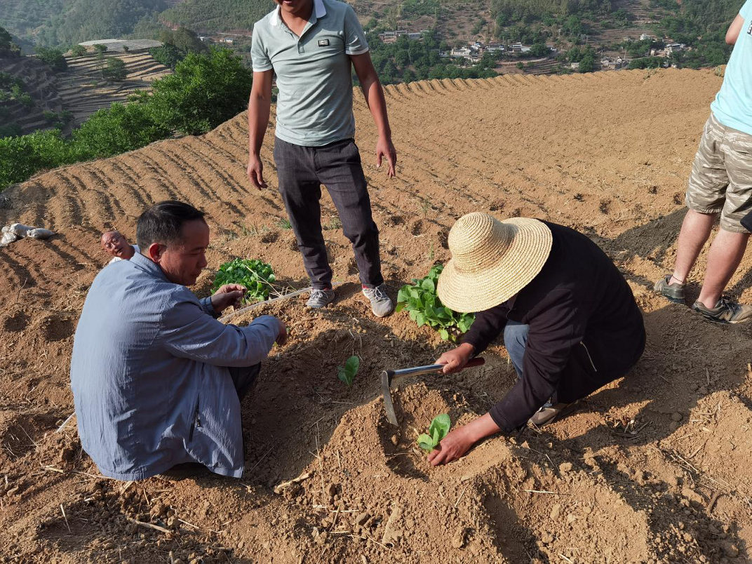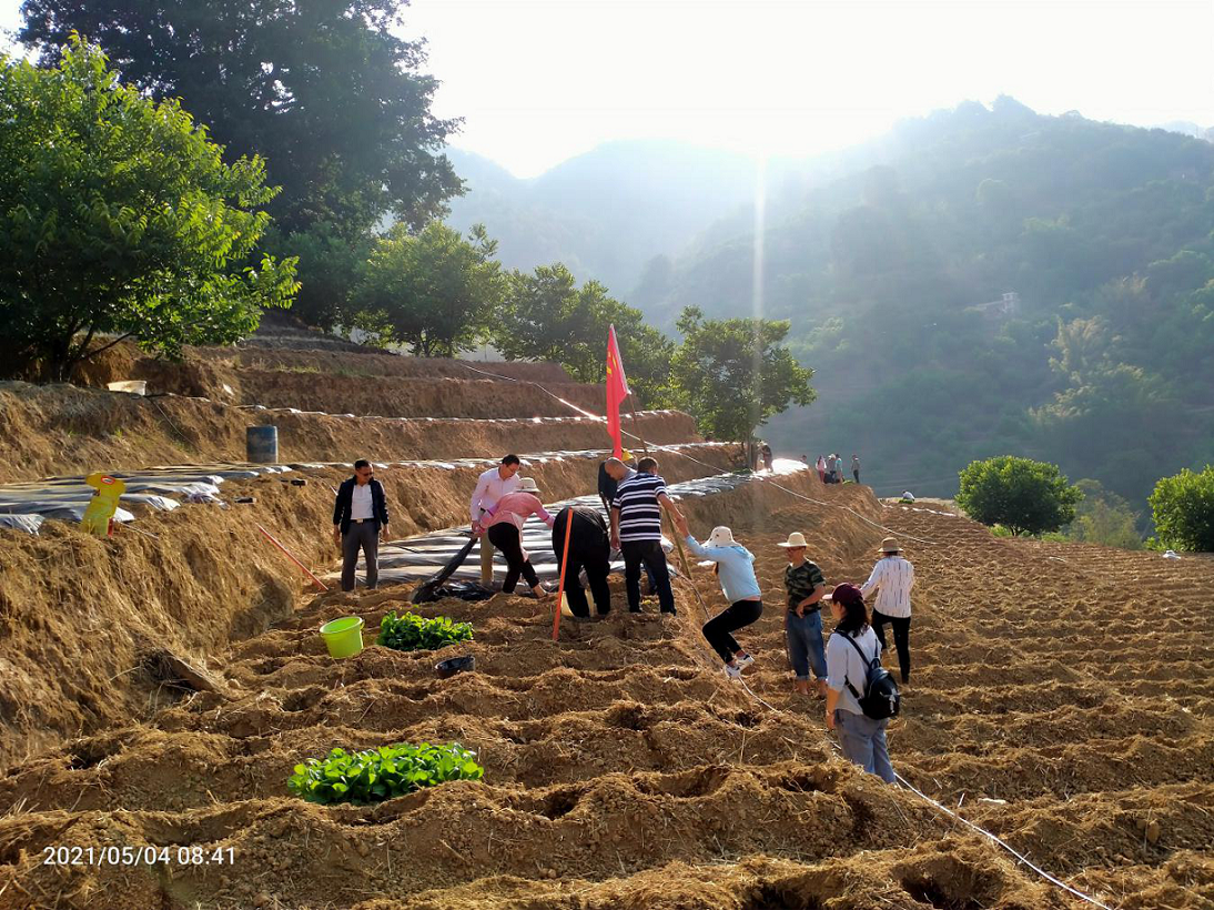 5月4日一大早,党员同志们纷纷卷起裤脚、挽起袖子,操起农具,挖地、种植,边劳作边与群众交流,与主人拉家常、谈党史学习教育和国家惠农政策,整块地里飘荡着欢声笑语。