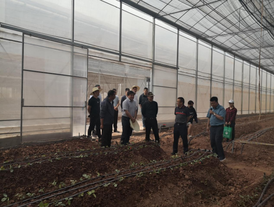 随后考察团到达河硐村委会参观大棚玫瑰花养殖,该项目一期已经完工并开始进行第一批鲜切玫瑰移栽工作,徐营冷链加工厂配合河硐村西蓝花种植基地,将采收的西蓝花进行分拣、加工、打包、入库、装车等一系列工作。目前一期项目已经投入使用,二期工程正在建设当中。