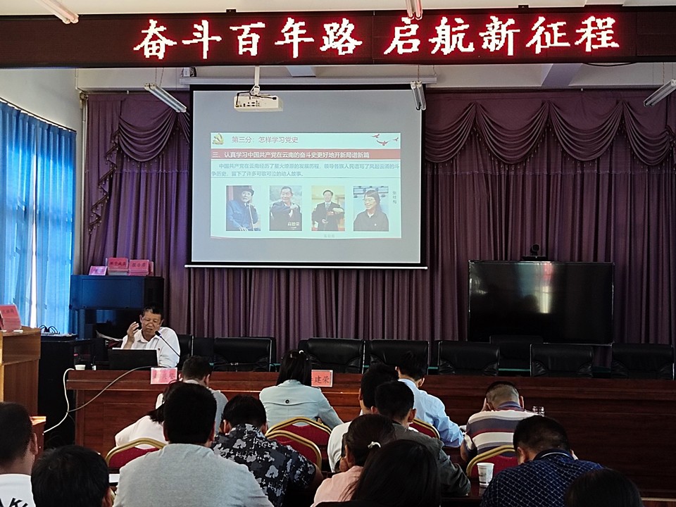 宣讲会上,赵兴誉以《奋斗百年路,开启新征程》为题,紧紧围绕学习领会习近平总书记关于党的历史的重要论述,结合南华红色革命历史,用鲜活的事例、精彩的语言,对建党一百年以来的光辉历程、伟大成就、宝贵经验进行了多层次、全视角、分重点、有针对性的解读,为广大党员干部上了一堂系统、生动的党史学习教育课。