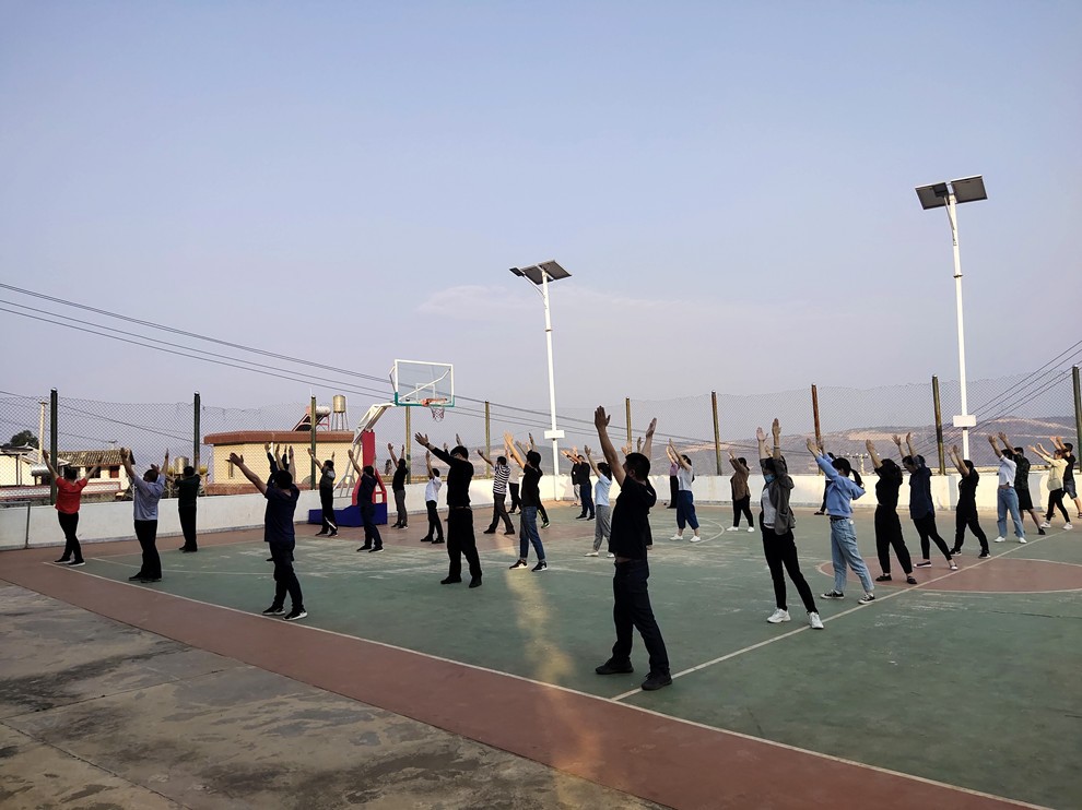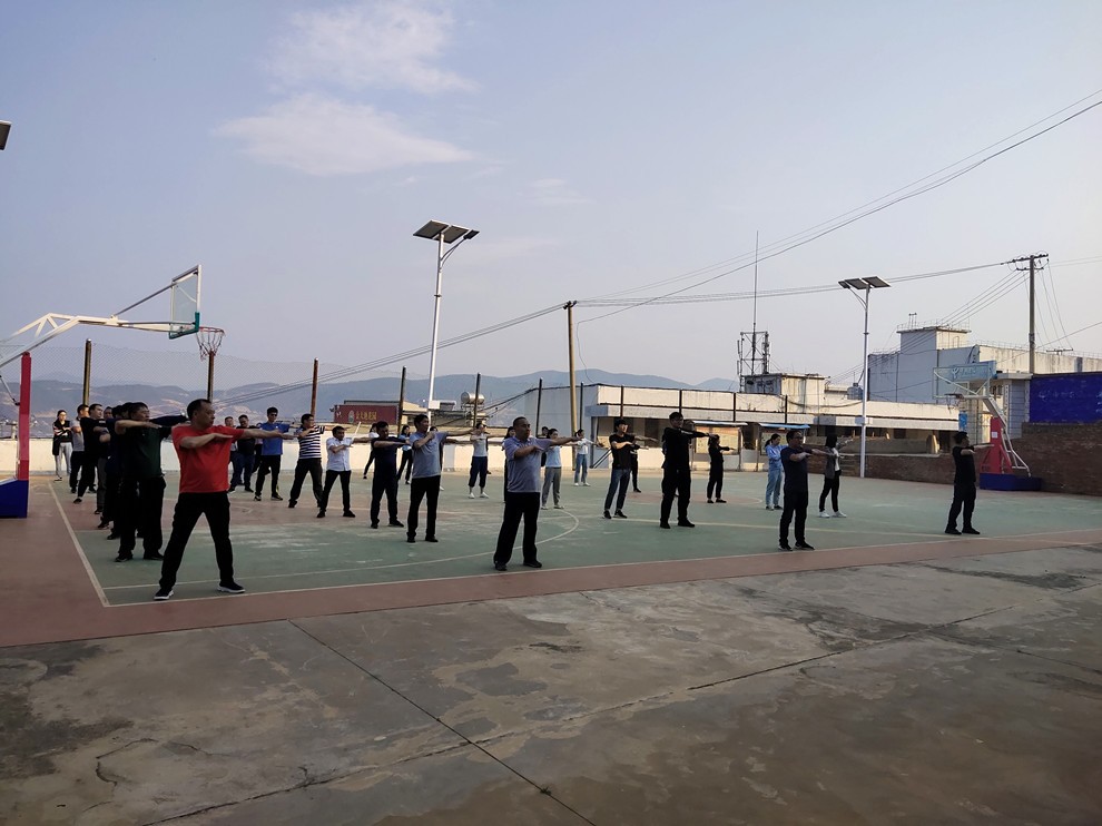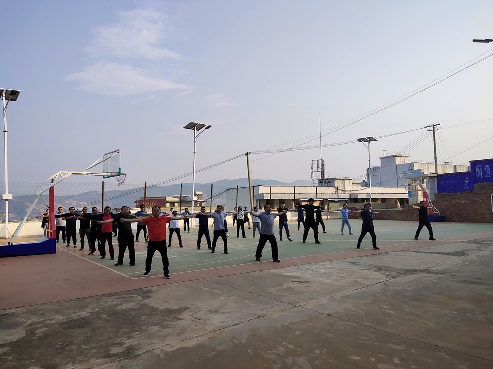 工间操是一种易学易行、不受场地限制且便于普及和推广的集体健身形式,深受广大干部职工和群众欢迎。除星期一开干部职工例会,其余每天早上8:00,“现在开始,原地踏步走!一二三四,五六七八……”随着第九套广播体操音乐响起,在文化站篮球场,全体干部职工们精神抖擞,整齐列队,和着节拍,舒展身体,动作规范,整齐划一,成为一道靓丽的风景线,展现出良好的精神风貌和饱满的工作活力。以实际行动落实“社交距离、勤于洗手、分餐公筷、革除陋习、科学健身、控烟限酒”的美丽南华罗武庄新风尚。