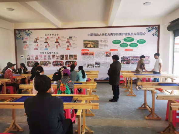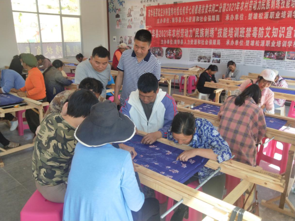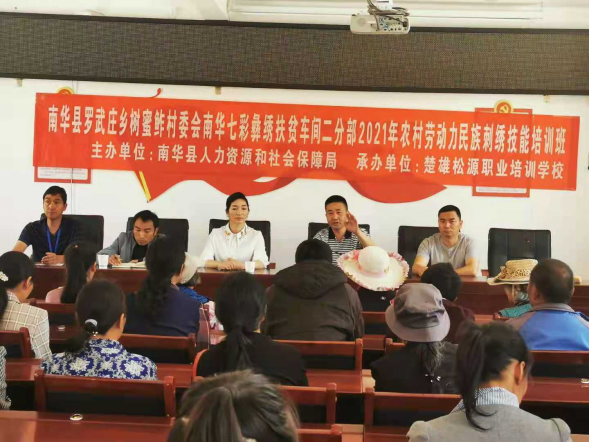 为有效推进罗武庄乡民族手工艺品和村集体产业有机融合,增强村集体经济发展的内生动力和造血功能,形成推动村集体经济发展、实现妇女群众稳定就业增收的整体合力,大力发展农村电商,4月20日,县人力资源和社会保障局、楚雄松源职业培训学校、罗武庄乡政府联合在罗武庄乡树密鲊村委会南华七彩彝绣扶贫车间二分部举办2021年农村劳动力民族刺绣培训班。