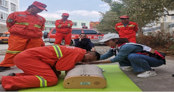 此次培训分理论和实操两个部分。培训教师结合消防员工作特性,通过情景模拟、现场示范等方式分别从消防救援中常见突发事件的处理方法、心肺复苏、创伤救护、骨折搬运、气道异物梗阻等讲解了实用的自救互救知识,学员们都认真听讲,积极参与徒手心肺复苏、现场包扎技术的实操演练互动,整个课堂气氛充满活力。