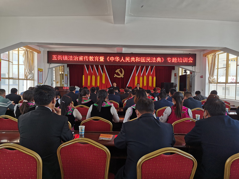 为深入学习贯彻《中华人民共和国民法典》,切实增强基层干部学法、用法的自觉性,有效运用《中华人民共和国民法典》开展基层工作、化解矛盾纠纷、促进社会和谐稳定, 增强基层干部的法治意识,提升依法行政的能力,4月14日下午,五街镇开展《中华人民共和国民法典》专题培训会,镇党政班子领导、镇级机关全体干部职工、村党总支书记、部分党代表参加了培训。此次培训邀请南华县司法局副局长王建成同志进行授课,会议由镇党委副书记、镇长马成福同志主持。