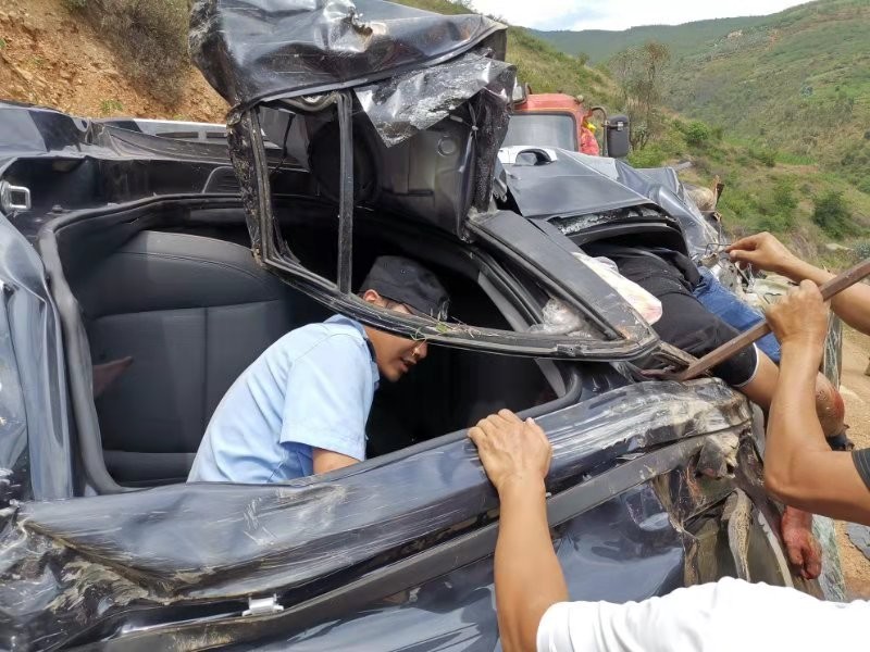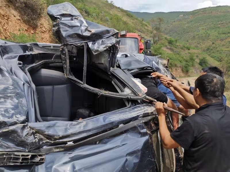 近日,南华县公安局罗武庄派出所接110指挥中心指令:“有人报警一辆小车在罗武庄乡树密鮓村委会地段发生事故,径直翻下近50米的山坡,请迅速救援。”罗武庄派出所民警接到警情,第一时间带上装备紧急赶赴事故现场。