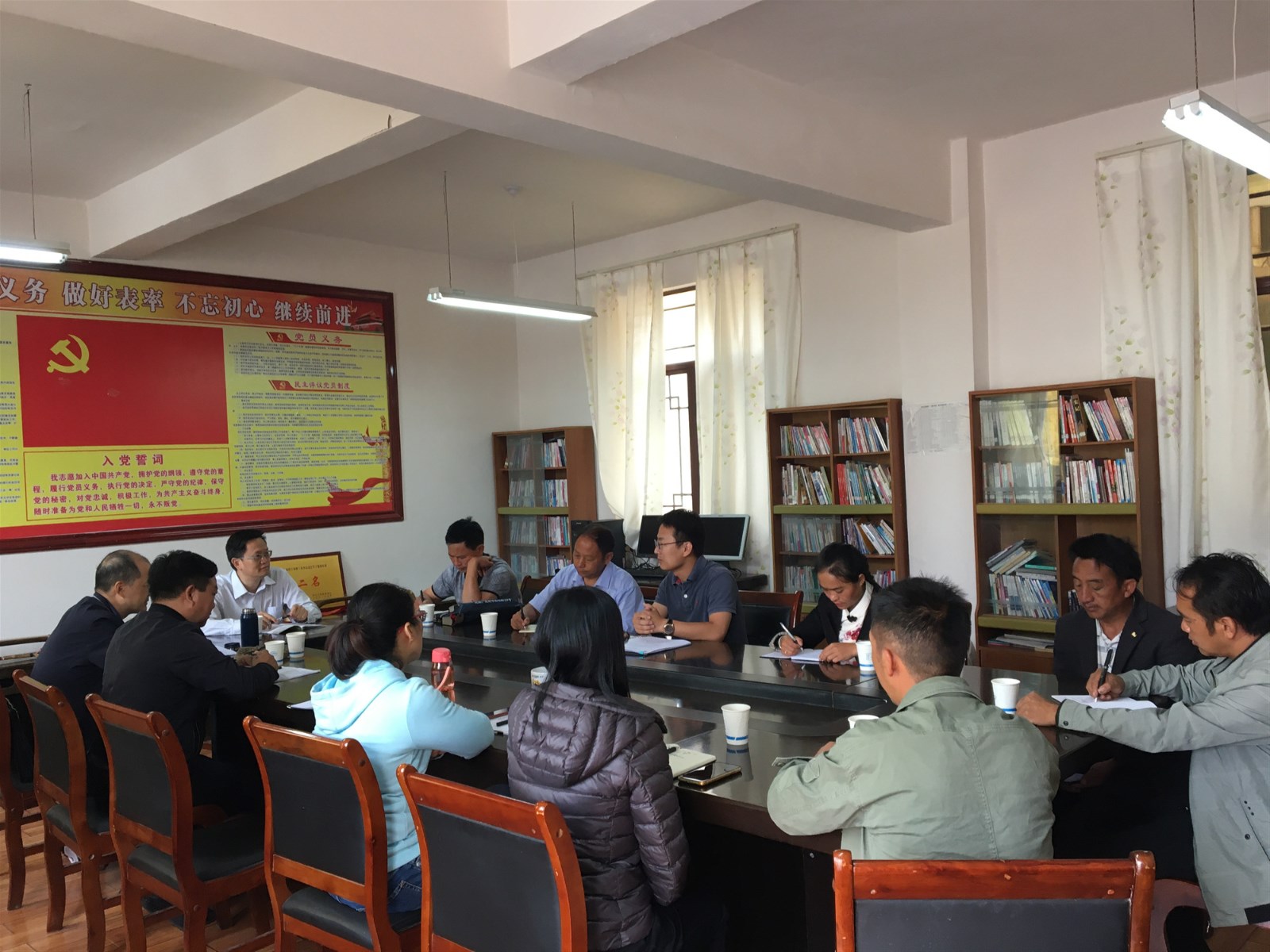 杨林兴一行看望慰问驻村工作队员,实地查看了红色书屋建设情况,并捐赠了党史书籍。
