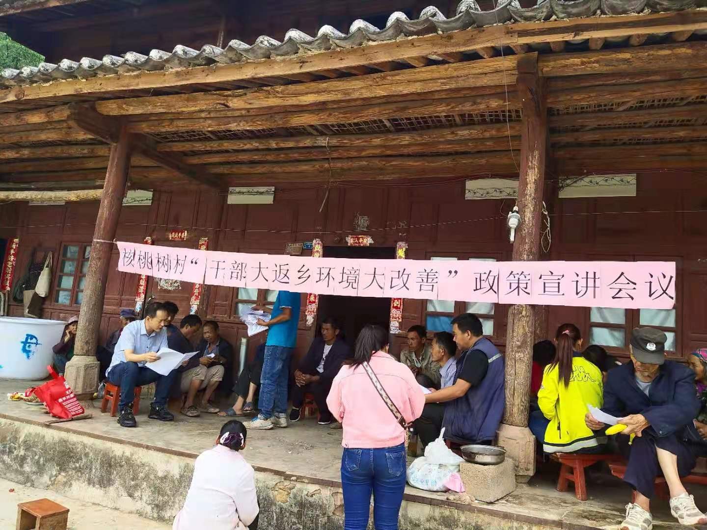 一是开展一次政策宣讲活动。返乡干部与村委会结对,召开专题座谈会,研究宣传重点并深入所在村组,召开户长会议,将爱国卫生“七个专项行动”和农村人居环境整治提升的内容和相关知识宣传到各家各户。