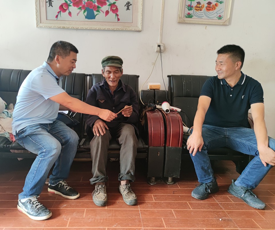 在村老骨干李聪潮家中,乡党委书记彭建林与他亲切交谈,聆听他讲述在村委会工作经历,关心询问他的身体健康和生活起居等情况,并送上慰问金,感谢他为党的事业和罗武庄乡经济社会发展作出贡献,嘱咐他要保重身体,希望他永葆共产党员的本色,继续关心、引领广大农民群众感党恩、听党话、跟党走。