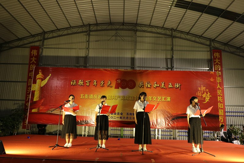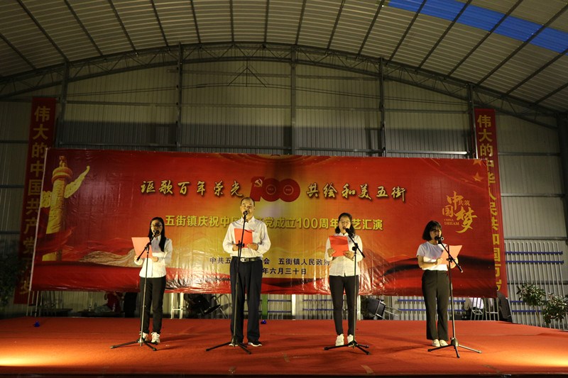 胸怀千秋伟业,恰是百年风华。6月30日晚,五街镇在镇篮球场举办“讴歌百年荣光·共绘和美五街”文艺汇演,以跨行联谊、上下联手、党群同庆、礼乐化人的方式,热烈庆祝中国共产党百年华诞。