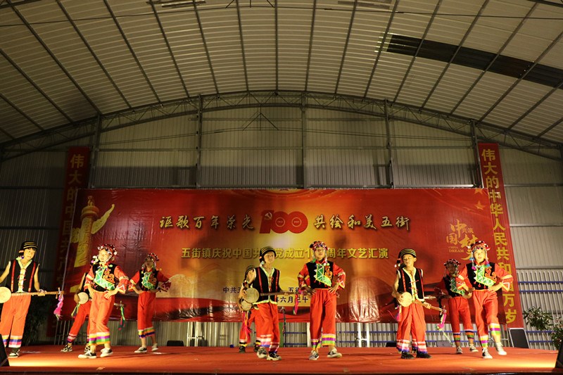 五街初级中学文艺队带来的舞蹈《红火五街》,展现了彝乡群众心声,是人民群众精神文化不断提升的标志。