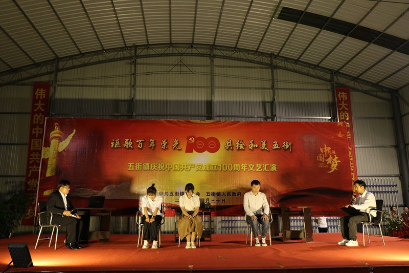 为方便更多群众观看演出、扩大晚会影响,落实疫情防控常态化,五街镇庆祝中国共产党成立100周年文艺晚会采用了现场集中观看和网络直播相结合的方式进行,让更多无法到现场观看的群众能一饱眼福,足不出户看演出。据悉,晚会现场观众200余人,网络直播总观看量突破6000人次。