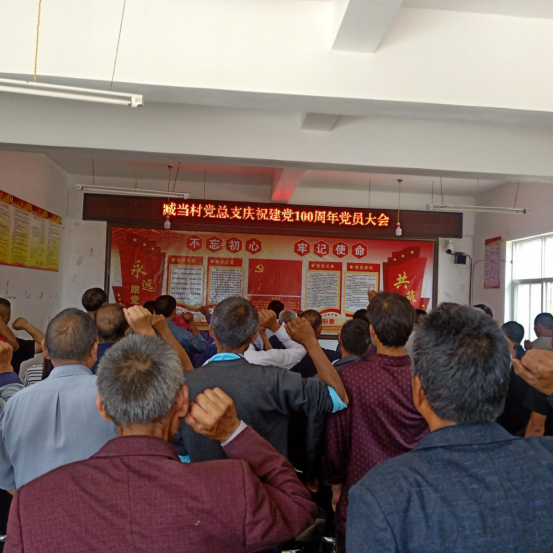 召开庆祝中国共产党成立100周年党员大会。会上重温了入党誓词;为党龄达到50周年、一贯表现良好的党员颁发“光荣在党50年”纪念章,对他们所作出的贡献给予高度评价,同时希望老党员们继续为乡村振兴凝聚力量、发光发热;乡联系领导周兴云同志和沈娅梅同志分别为党员讲授党课,号召大家牢记入党初心和使命,发挥旗帜领航作用;村党总支书记张承福向该村的党员们总结汇报了上半年开展的工作以及下半年的工作打算,并希望各位党员对村党总支及村委会的工作多给予支持、多提宝贵意见。大会在《没有共产党就没有新中国》的歌声中宣布结束,党员们用自己的歌声向伟大的祖国献礼致敬。