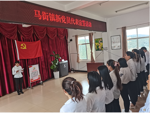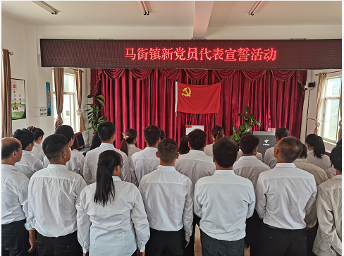 6月25日14点50分,马街镇在镇人民政府三楼会议室与全省、全州、全县同步举行新发展党员代表宣誓活动,镇班子成员、镇属机关党支部书记、马街、法空村党总支书记同步重温了入党誓词。镇党委书记耿昌辉领誓,镇人民政府镇长李俊主持宣誓活动。