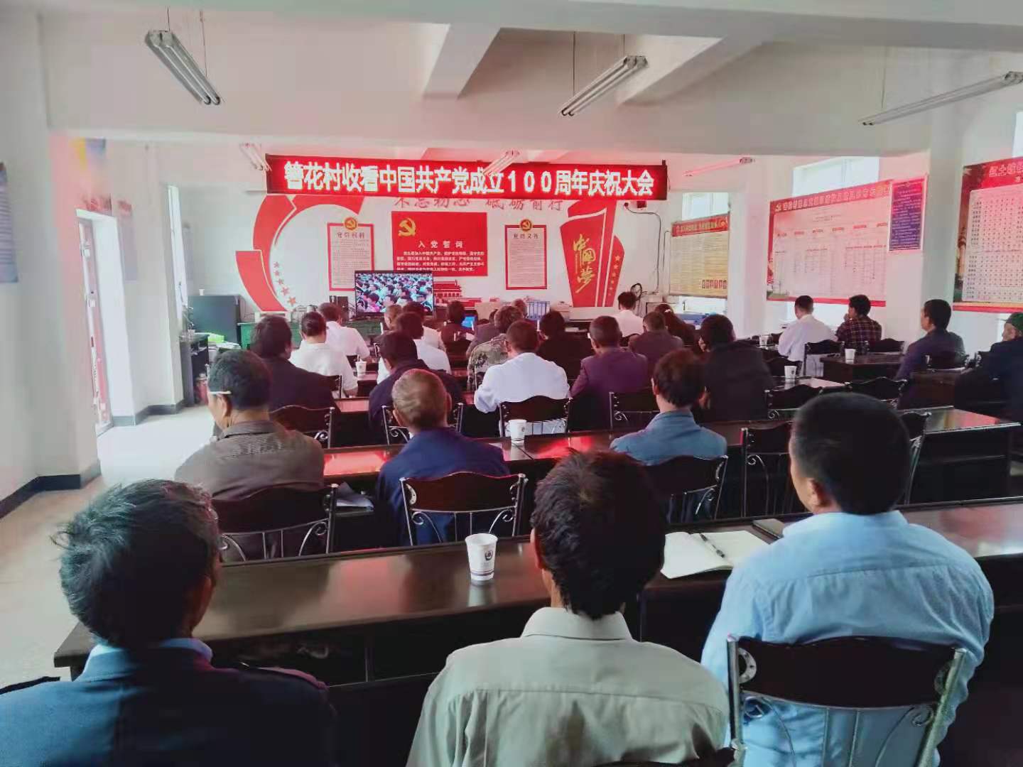 收看结束后,镇党委书记何育胜同志要求:今天是党的百年华诞,是一个十分重大而庄严的日子,全镇广大党员干部要紧密团结在以习近平同志为核心的党中央周围,回顾历史,展望未来,牢记初心使命,坚定理想信念,践行党的宗旨,永远保持同人民群众的血肉联系,始终同人民群众想在一起、干在一起,风雨同舟、同甘共苦,立足岗位做贡献,以更加昂扬奋进的姿态践行初心使命,推动红土坡镇各项事业高质量发展。