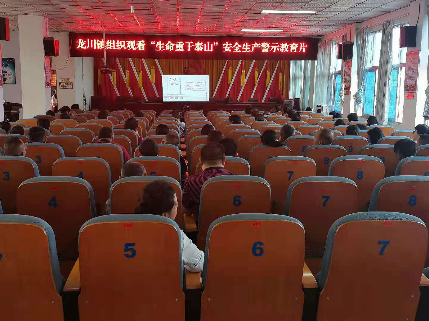 为进一步加强全镇干部职工安全意识、责任意识,坚决克服松懈麻痹思想和侥幸心理,6月28日上午,龙川镇结合“落实安全责任,推动安全发展”安全生产月主题活动、贯彻落实省、州、县自然灾害和安全生产工作部署会议精神,组织全体干部职工120余人集中观看《生命重于泰山》安全生产警示教育片。
