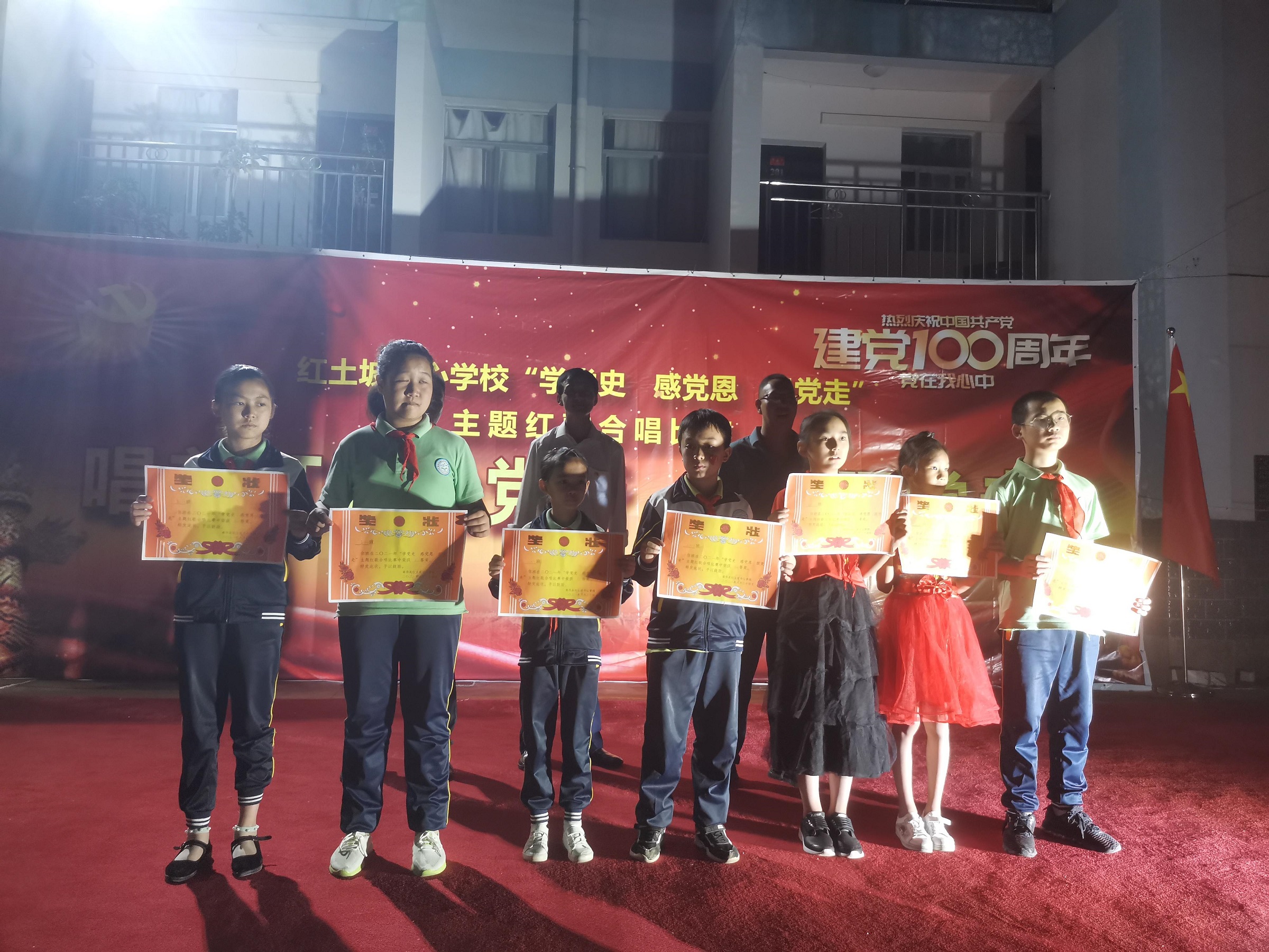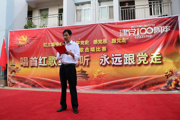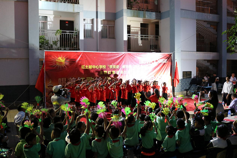 为弘扬红色精神,激发奋进精神,热烈庆祝中国共产党成立100周年,教育学生铭记历史,继承光荣传统。6月24日,红土坡中心学校组织开展“学党史 感党恩 跟党走”主题红歌合唱比赛。傍晚7点,在一片欢声笑语中,红土坡中心学校主题红歌合唱比赛拉开了帷幕。