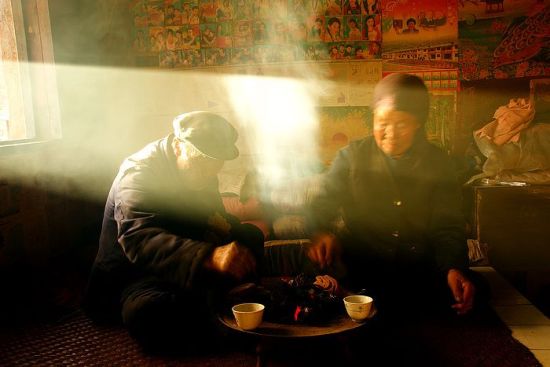在南华县的彝家,堂屋中的火塘四季不灭。一只茶罐总是煨在火塘边,飘着茶香。在当地,上了些年纪的老人都喜欢喝罐罐茶,茶叶大多是本地产的粗茶,有的甚至是从山上采回的野茶,一次要放一大把,味酽且苦涩。