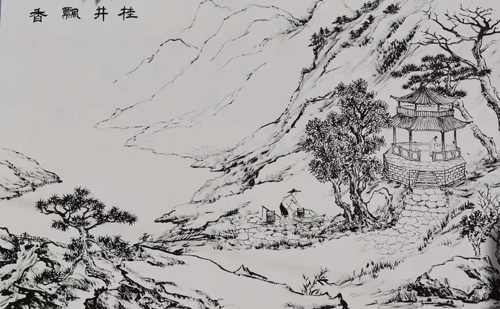 桂井飘香 城东五里桂花井,水甘洌,井上旧有丹桂二株,旁有八角亭,今废。题曰:八角亭古,双桂花芳。花不常在,亭亦就荒。沧桑屡易,水味如常。汲以修绠,涤我诗肠。复烤厂下方与楚南一级公路交界之处,古迹已毁。