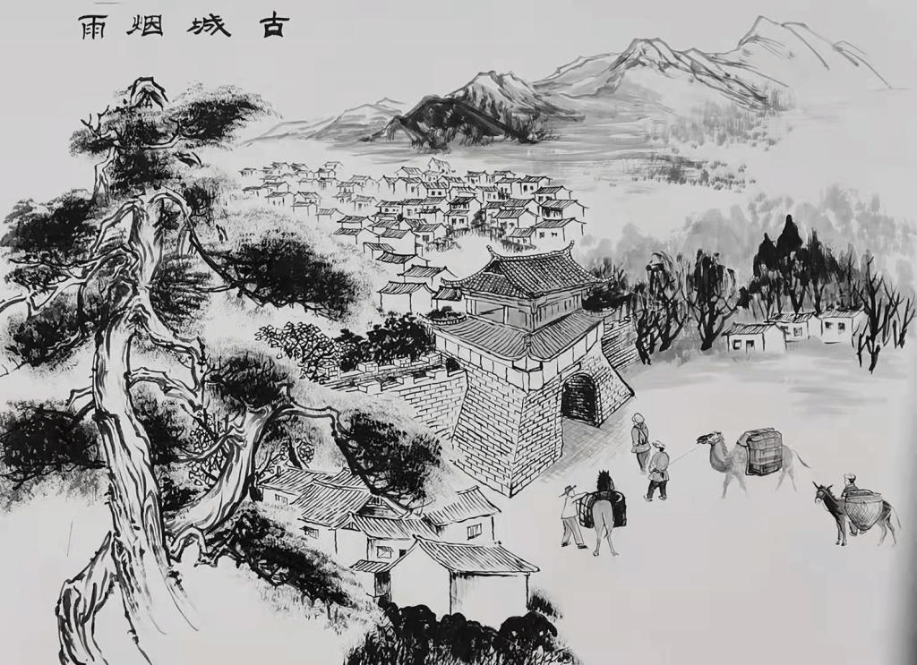 古城烟雨 古和子城在州东二里,旧建东岳庙于其地,右有镇川桥,左有锁水塔。雨中登高远望,烟树溟濛,楼阁参差,如披图画。题曰:和子旧城,胜迹孔多。群山绕岸,石壁临河。淡烟笼树,疏雨乍过,登高览胜,诗思如何。今南华土城桥生态公园一带,这里是古和子城所在,镇川桥(也称土城桥)横跨龙川江。