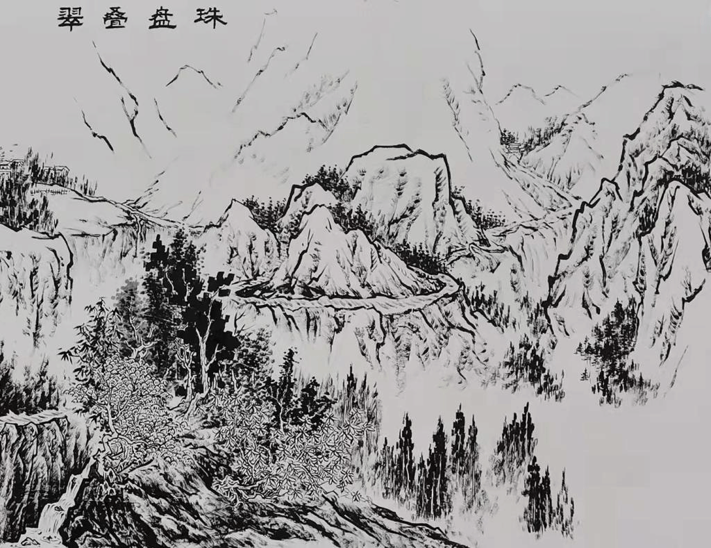 珠盘叠翠 城北十五里珠盘山,峰峦盘叠如珠。题曰:山名珠盘,峰回路转。一串牟尼,曲折深窅。积翠重重,青光了 了。静憩林荫,时闻啼鸟。今两旗海湿地公园、南华民族中学、德茂温泉庄园、宝珠寺、水河一带。