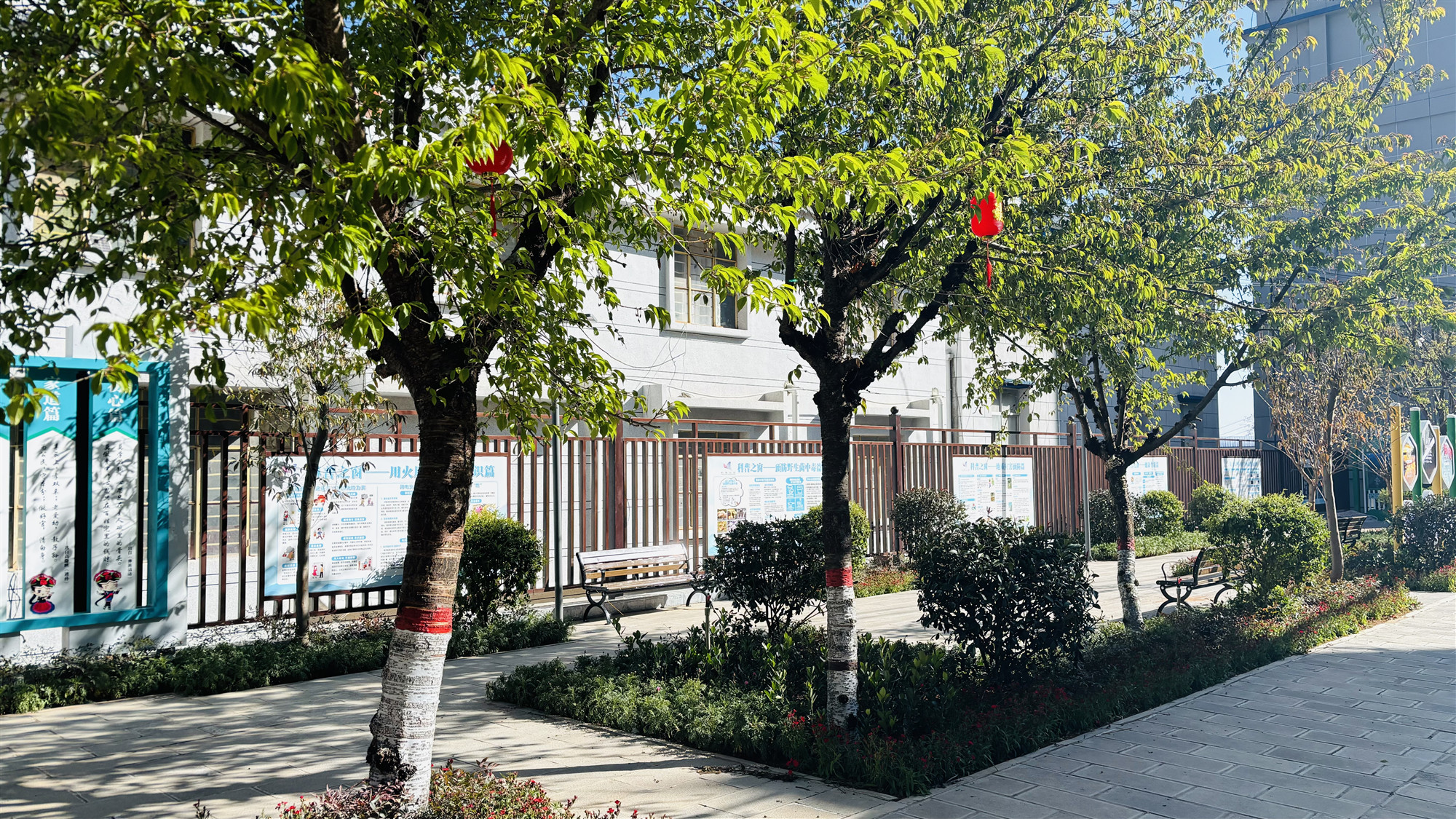 走进五街镇集镇,可以看到路边的口袋公园绿树成荫、花香四溢,为居民们带来了一片宁静与惬意。阳光透过树叶的缝隙洒在地上,形成斑驳的光影,让人倍感温馨与舒适。
