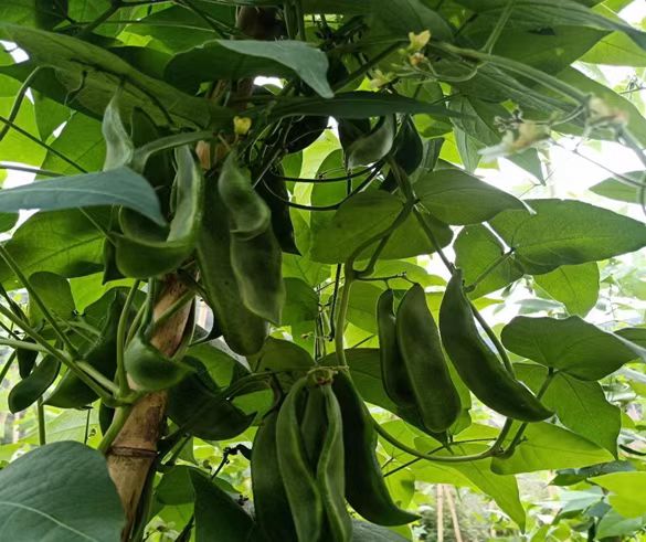 进入3月以来,去年冬季种植的荷包豆陆续成熟,一个个“月牙”一样的豆角挂在藤上,饱满而圆润,剥开那碧绿的“大棉袄”,里面的豆仁成双成对,饱满诱人。
