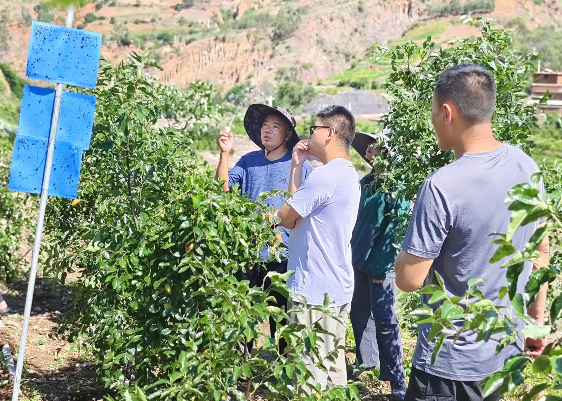 事实上,除了小枣,芒果、柚子、石榴、沃柑等都是团山村在当地小有名气的特产,在河谷低海拔地区种植热带水果,在沿河两岸及中低海拔地区种植红花、冰粉,在高海拔地区村组发展南瓜、辣椒种植。全村种植沃柑240亩、芒果65亩、石榴45亩、柚子50亩、柑橘30亩、李子25亩,发展红花460亩、冰粉260亩、玉米745亩、蜜本南瓜340亩、辣椒100亩,特色产业发展规模进一步扩大,低热河谷绿色果蔬种植产业集聚水平进一步提升,果蔬总产量达80余吨,成为农民的重要收入来源。一街乡的群众都说,曾经需要从县城甚至更远的地方运来才能吃到的水果现如今在自己家门前也能尝到了。