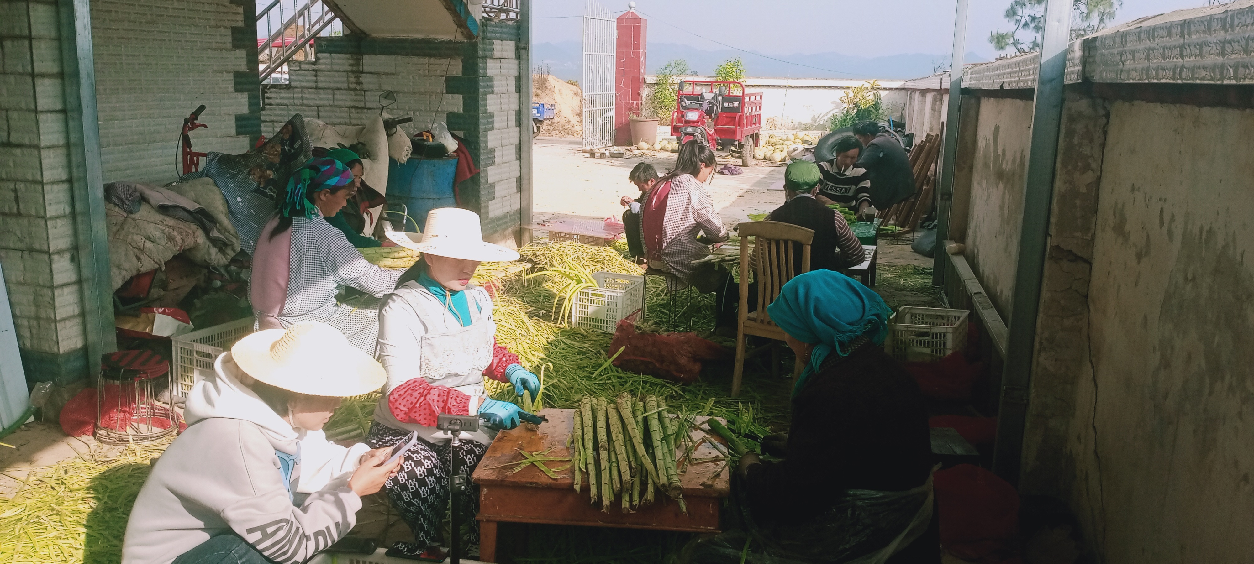 在浩渺的中华美食中,贡菜以其独特的口感和营养价值,占据了不可或缺的一席之地。 眼下,正是贡菜成熟收获的季节,在南华县五街镇中村村委会,一片片成熟的贡菜翠绿挺拔。菜农正在忙着采收新鲜的贡菜,收割、择摘、搬运、扒皮、晾晒、打捆,分工明确、秩序井然,现场一派繁忙景象。