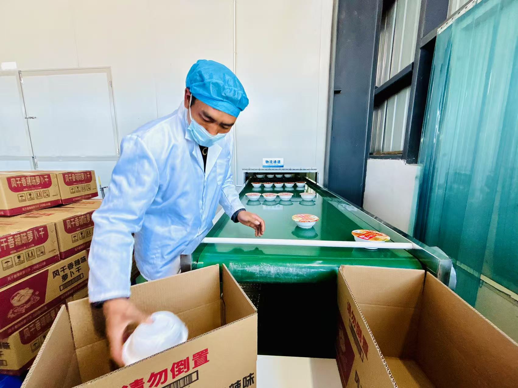 在清洗区,工人们对萝卜条进行细致清洗,萝卜条变得更加晶莹剔透,每一根都蕴含着大自然的清新与甘甜。在腌制区,大缸里装满了秘制的盐水,萝卜条在这里经过时间的洗礼,慢慢吸收了盐水的精华,变得更加脆嫩可口。在装盒打包区,腌制好的萝卜干在自动生产线上被装入精美的包装盒中,工人们迅速而准确地将包装盒打包好,贴上标签,准备发往各大城市。