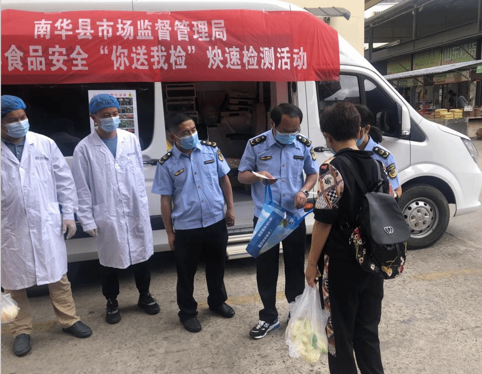 为提升全县食品安全水平,促进南华县食品安全监管工作更加贴近民生需求,推进食品安全社会共治,共同保障“舌尖上的安全”,让广大消费者买得放心、吃得安心。近日,南华县市场监督管理局开展2022年“你送我检”快速检测活动。
