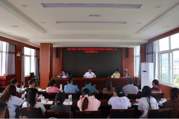 5月29日,南华县审计局召开全体干部职工大会,原文传达学习《云南省审计厅印发关于在全省审计机关开展特权思想和特权现象专项整治工作方案的通知》,并对专项整治工作作动员安排。