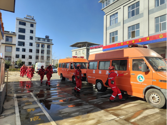 近日气温回暖、风险攀升,南华县应急救援队组织开展灭火拉动演练。